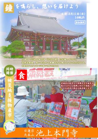 3月10日(土)中山法華経寺、3月11日(日)池上本門寺にて行われます、東日本大震災一周忌法要にて、希望の環催事販売をいたします。