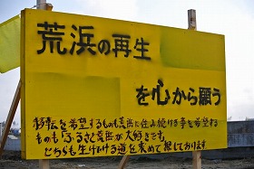 仙台市若林区荒浜で慰霊祭が執り行われました。14時46分、皆で黙とうを捧げました。まだまだ復興への道のりは長く険しいものとなりますが、立て看板にはこのように書いてありました。「移転を希望するものも荒浜に住み続ける事を希望するものも「ふるさと荒浜が大好きです」どちらも生きていける道を求めて探しております。」